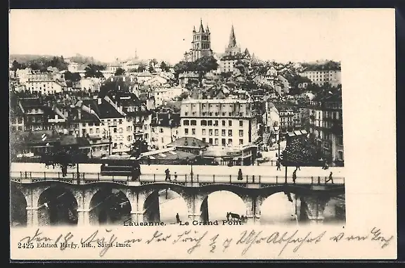 AK Lausanne, Le Grand Pont mit Strassenbahn