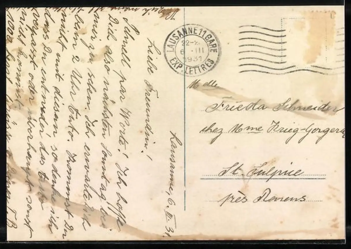 gelaufen 1931, Briefmarke entfernt, rückseitig Klebe- und Papierreste, guter Zustand