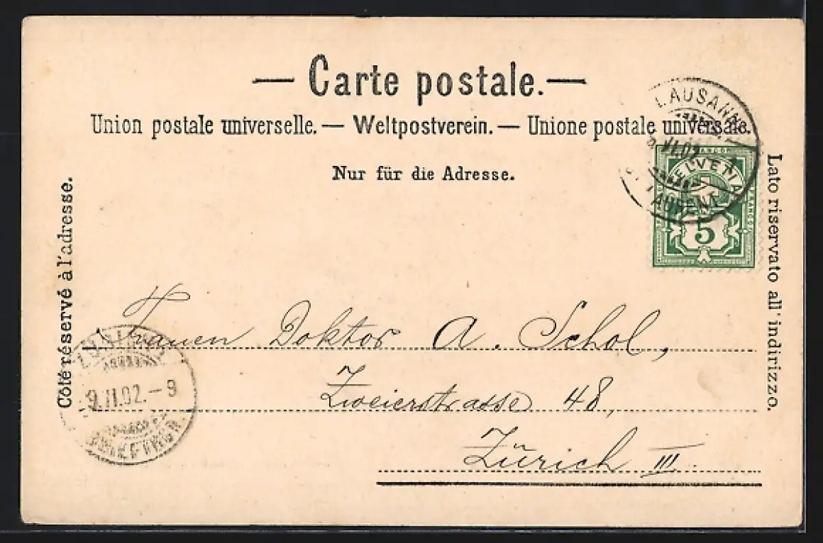 gelaufen 1902, leicht fleckig, guter Zustand