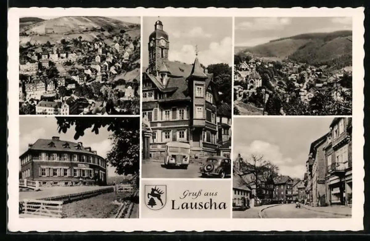 AK Lauscha in Thür., Fünf Ansichten vom und aus der Stadt