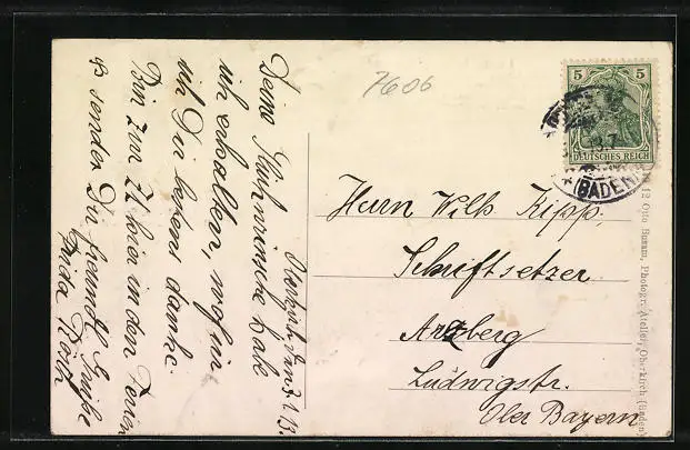 alte Ansichtskarte, gelaufen 1913, guter Zustand