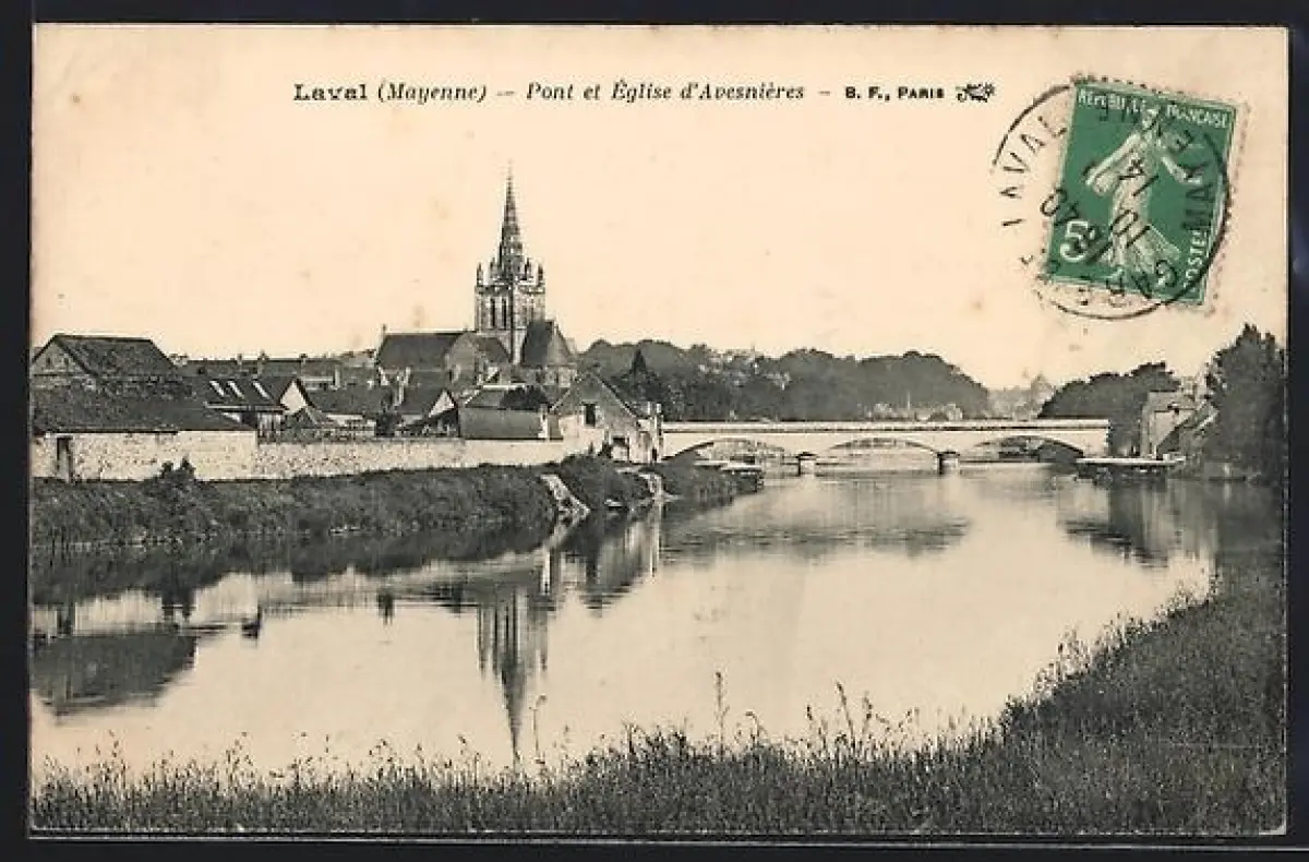 AK Laval /Mayenne, Pont et Église d`Avesnières