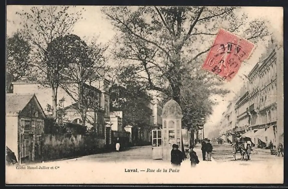 AK Laval, Rue de la Paix avec passants et calèche