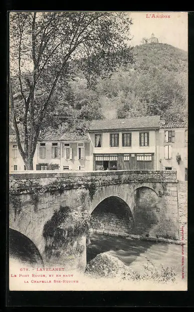AK Lavelanet, Le Pont Rouge, et en Haut la Chapelle Ste-Rufine