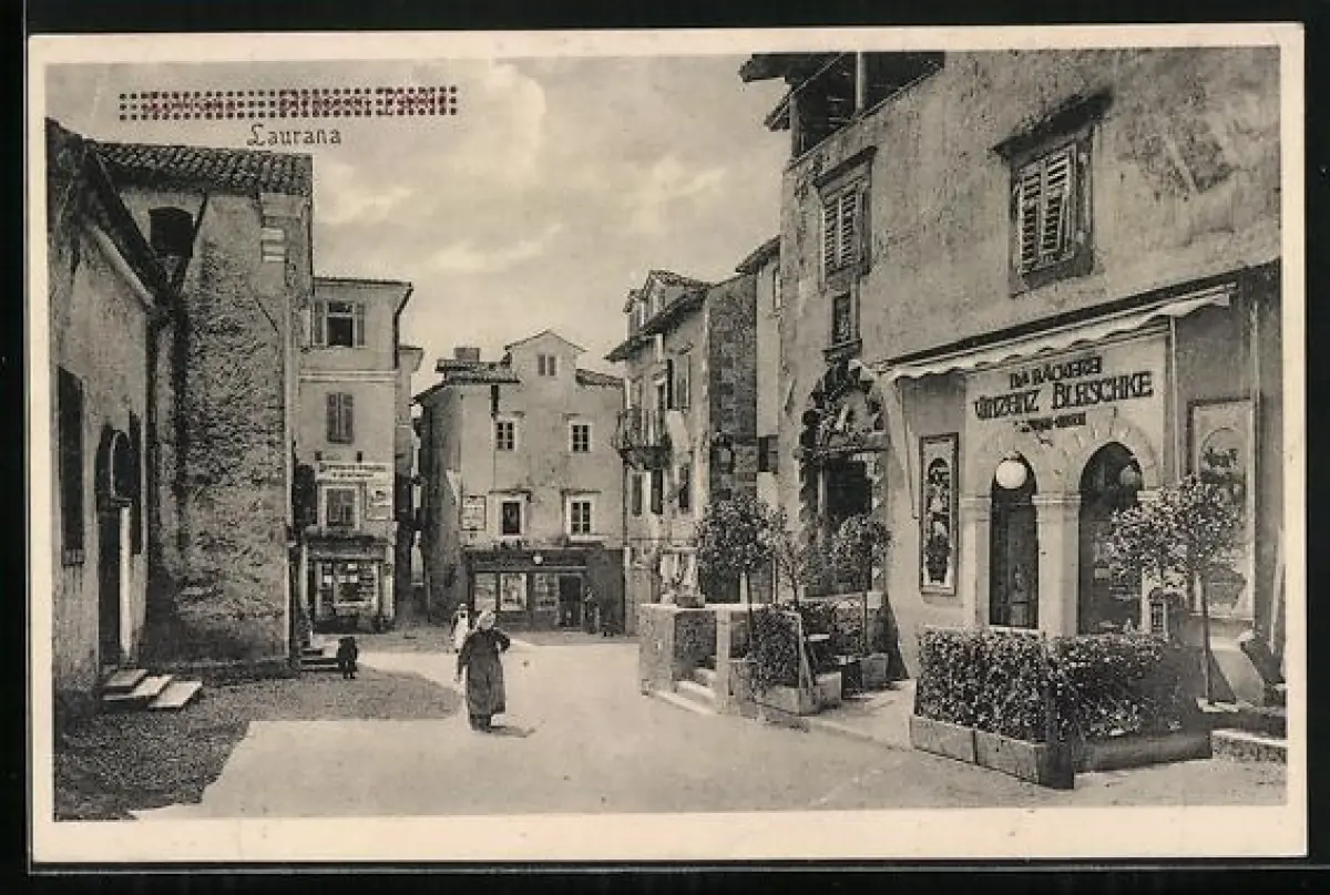 AK Lavrana, Strassenpartie mit Bäckerei Vinzenz Blaschke
