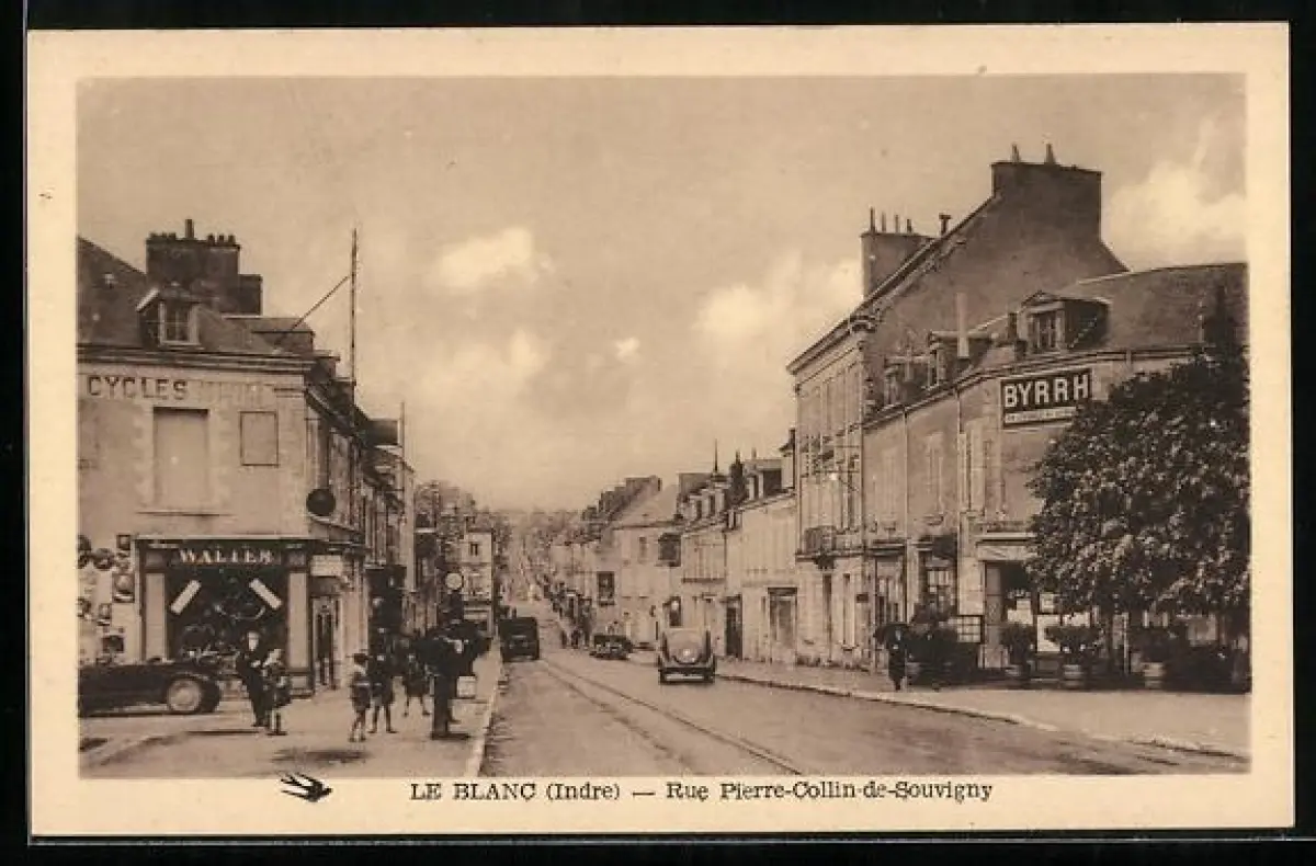 AK Le Blanc /Indre, Rue Pierre-Collin-de-Souvigny avec commerces et passants