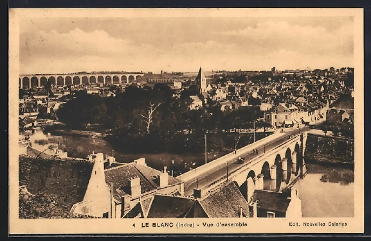 AK Le Blanc /Indre, Vue d`ensemble avec pont et viaduc en arrière-plan