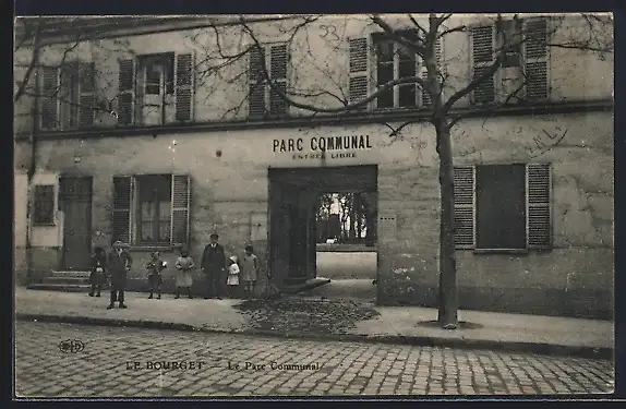 AK Le Bourget, Entrée du Parc Communal avec enfants devant le portail