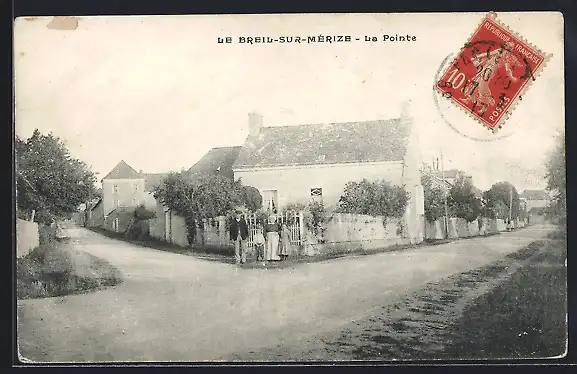 AK Le Breil-sur-Mérize, La Pointe avec maisons et habitants au carrefour