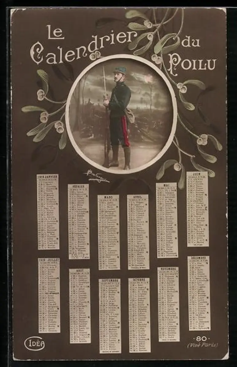 AK Le Calendrier du Poilu, Soldat in Uniform, Kalender