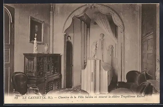 AK Le Cannet, Chambre de la Villa Sardou où mourut la célèbre Tragédienne Rachel