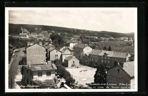 AK Le Chambon-sur-Lignon, Vue centrale et route de Saint-Agrève