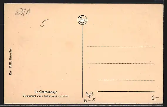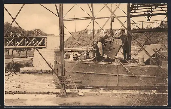AK Le Charbonnage, Déversement d`une berline dans un bateau, Verladen von Kohlen auf einem Schiff