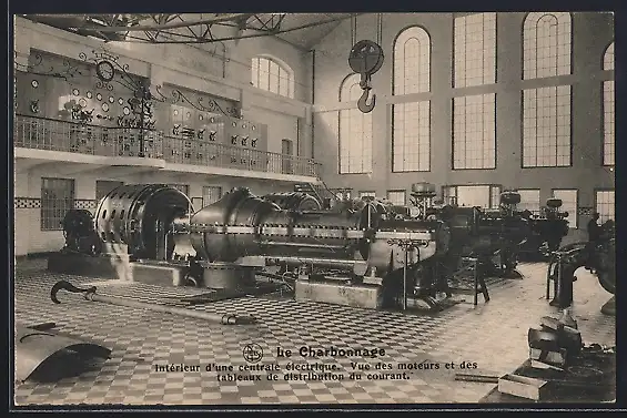 AK Le Charbonnage, Intérieur d`une centrale électrique, Vue de moteurs et des tableaux de distribution du courant, Kohle