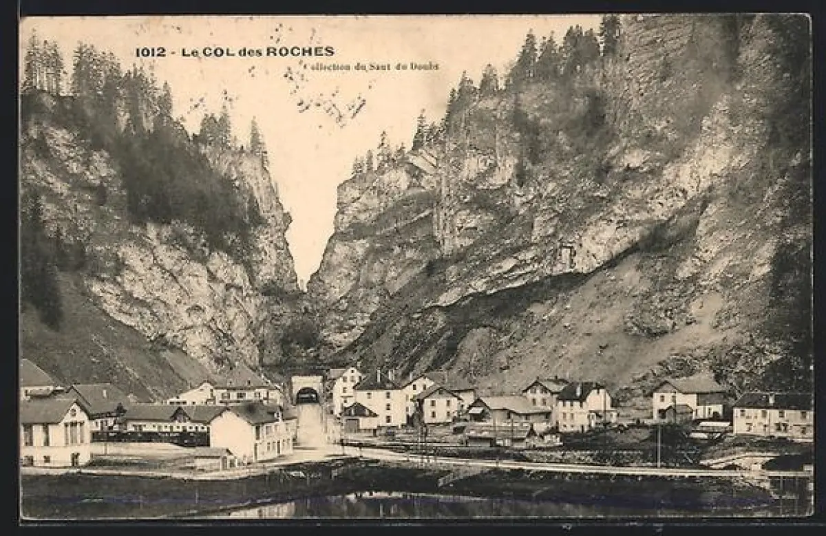 AK Le Col des Roches, Vue du village et du passage rocheux vers Doubs