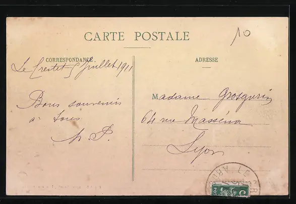gelaufen 1911, Eckknick rechts unten, guter Zustand
