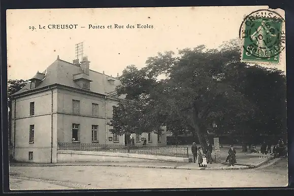 AK Le Creusot, Postes et Rue des Écoles