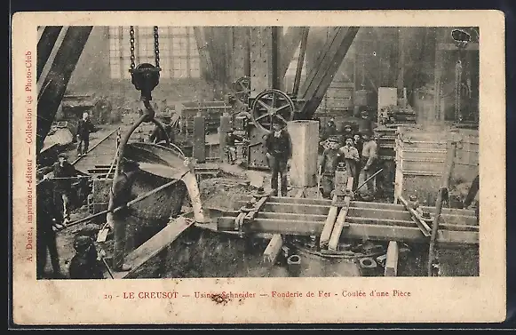 AK Le Creusot, Usines Schneider, Fonderie de Fer, Coulée d`une Piece, Stahlwerk