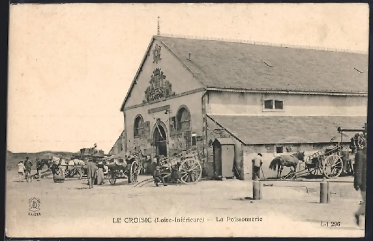 AK Le Croisic /Loire-Inférieure, La Poissonnerie avec charrettes et chevaux devant le bâtiment