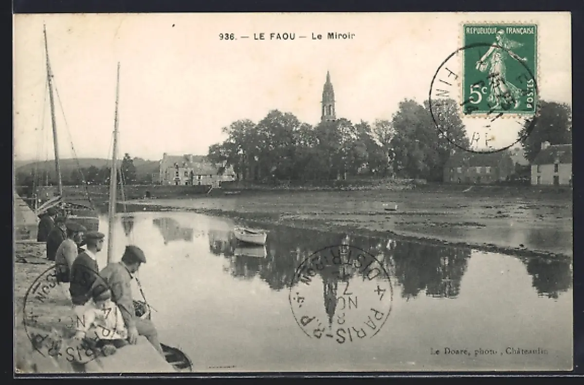 AK Le Faou, Le Miroir avec vue sur l`église et la rivière