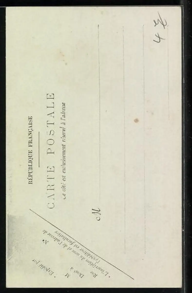 Personenbezogene Daten auf der Rückseite der Karte wurden durch blauen Textmarker unkenntlich gemacht. Die blauen Stellen sind auf die Vorderseite durchgeweicht und wirken sich negativ auf das Postkartenfoto aus