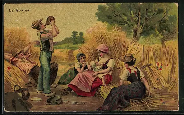 AK Le Gouter, Bauern bei der Getreideernte machen eine Pause