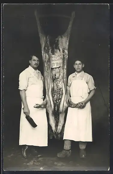 AK Le Grand-Lucé, Fleischer mit einem Schwein
