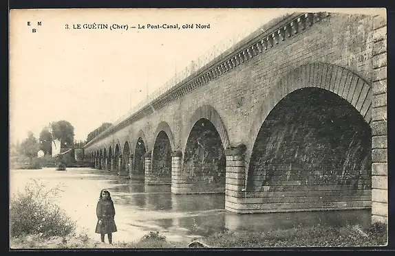 AK Le Guétin, Le Pont-Canal côté Nord avec une fillette au bord de l`eau
