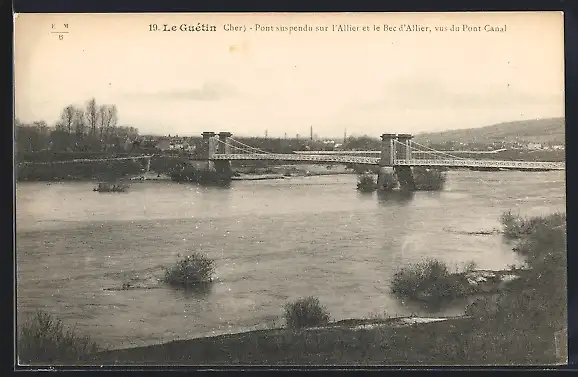 AK Le Guétin, Pont suspendu sur l`Allier et le Bec d`Allier, vus du Pont Canal