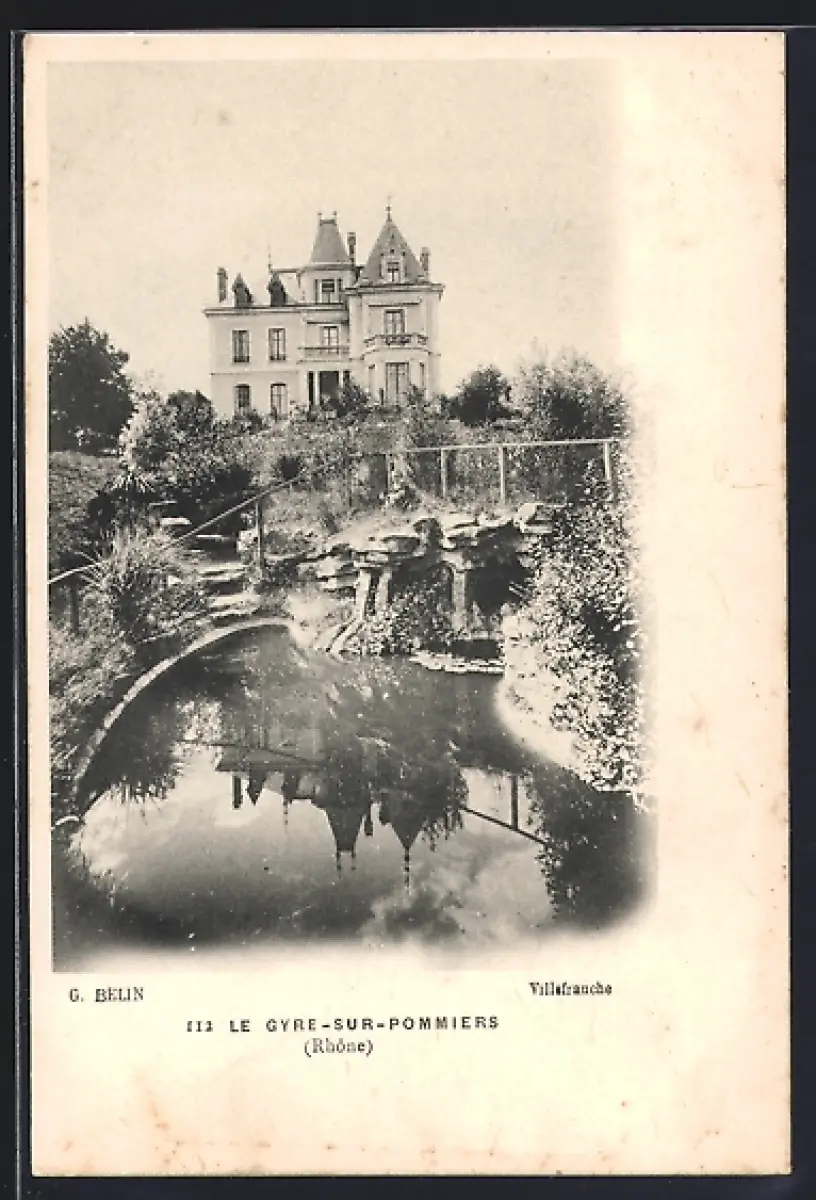 AK Le Gyre-sur-Pommiers /Rhône, Maison élégante avec jardin et étang réflétant l`architecture