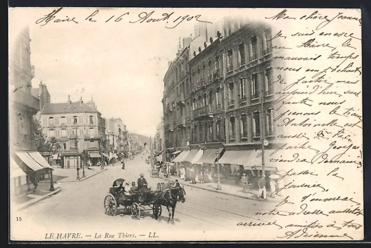 AK Le Havre, La Rue Thiers avec calèche et bâtiments historiques