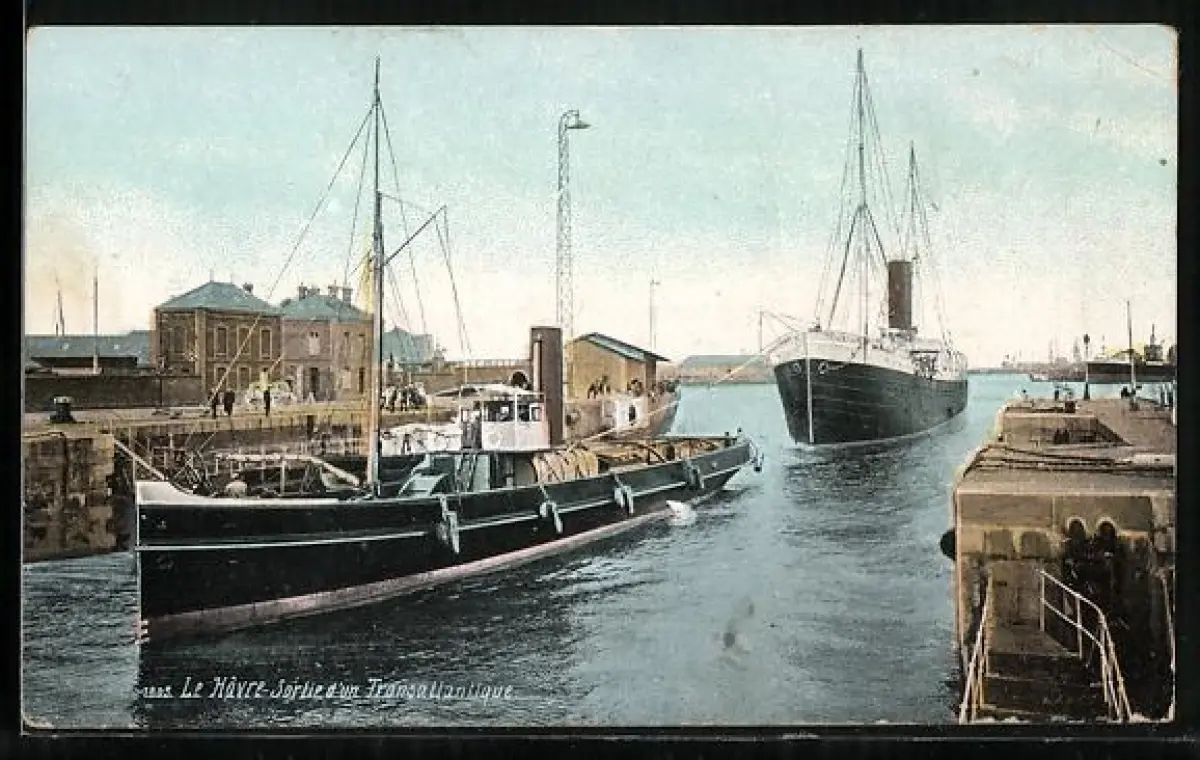 AK Le Havre, Sortie d`un Transatlantique, Schiff wird in den Hafen gezogen