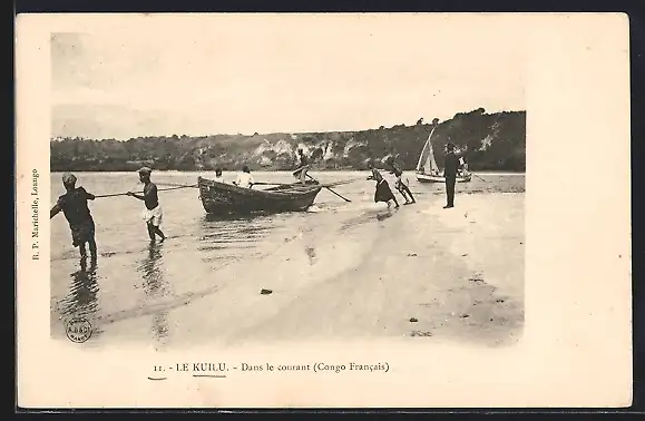 AK Le Kuilu, Dans le courant, Flussufer mit Einheimischen und Booten