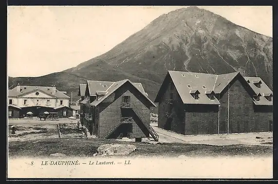 AK Le Lautaret, vue des bâtiments avec montagne en arrière-plan