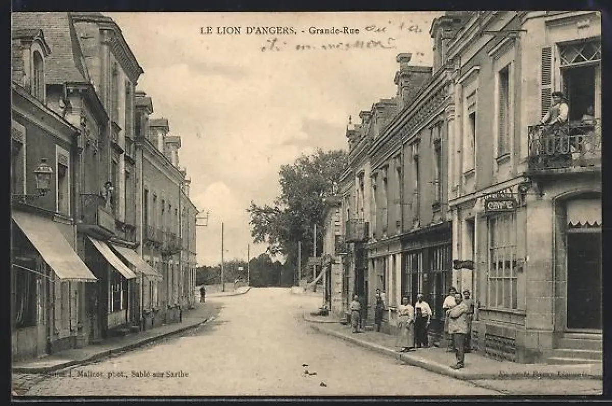 AK Le Lion-d`Angers, Grande-Rue animée avec commerces et passants