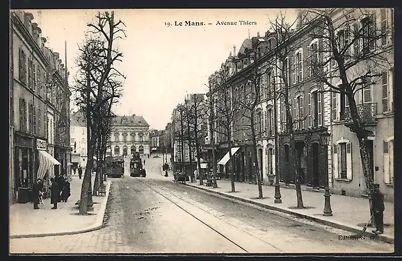 AK Le Mans, Avenue Thiers, Sicht zu den Strassenbahnen