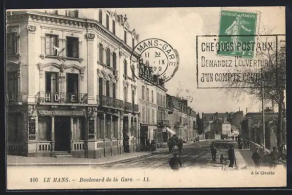 AK Le Mans, Boulevard de la Gare avec vue sur l`hôtel et passants