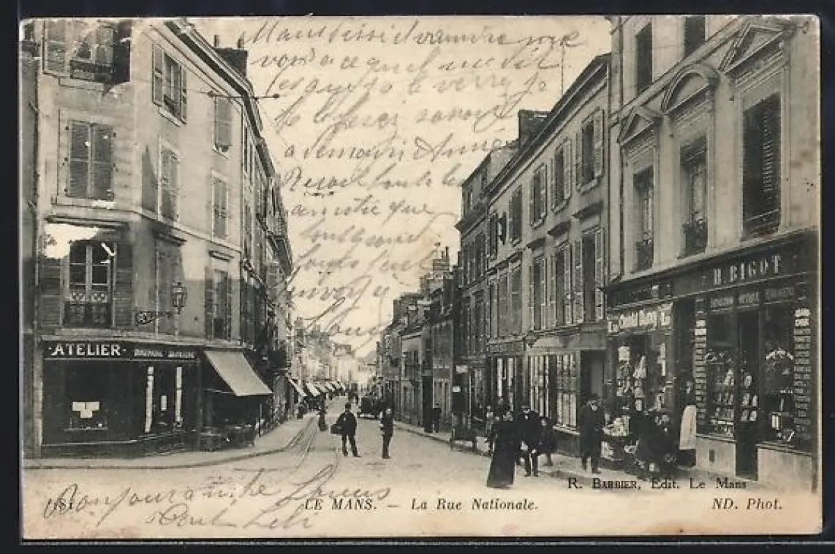 AK Le Mans, La Rue Nationale avec boutiques et passants animés