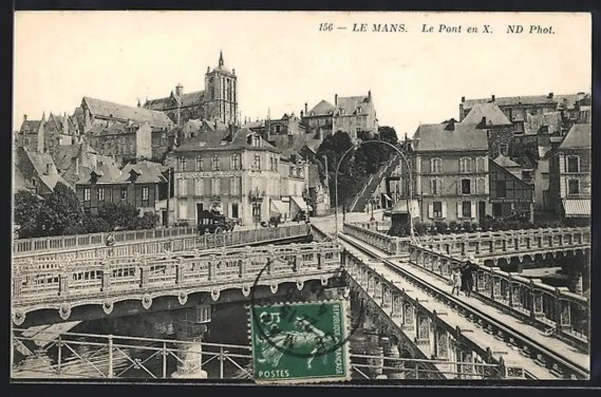 AK Le Mans, Le Pont en X et vue sur la ville historique
