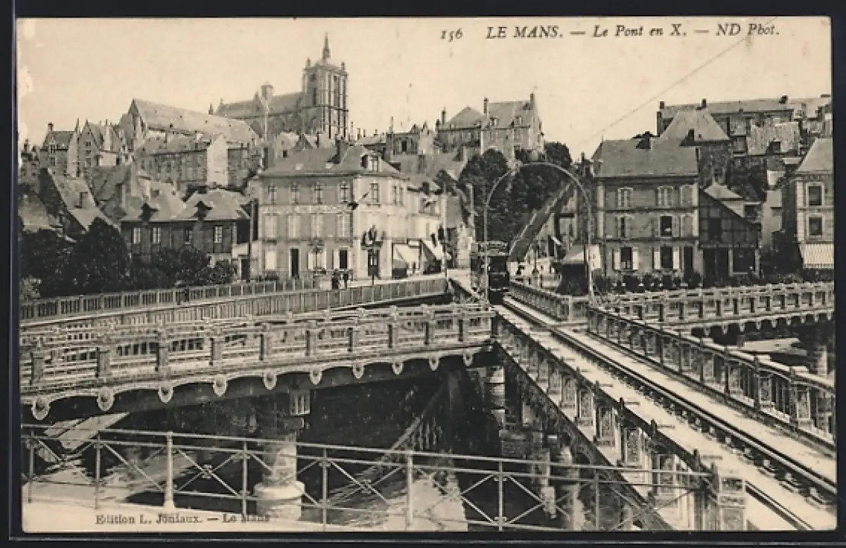 AK Le Mans, Le Pont en X, mit Strassenbahn