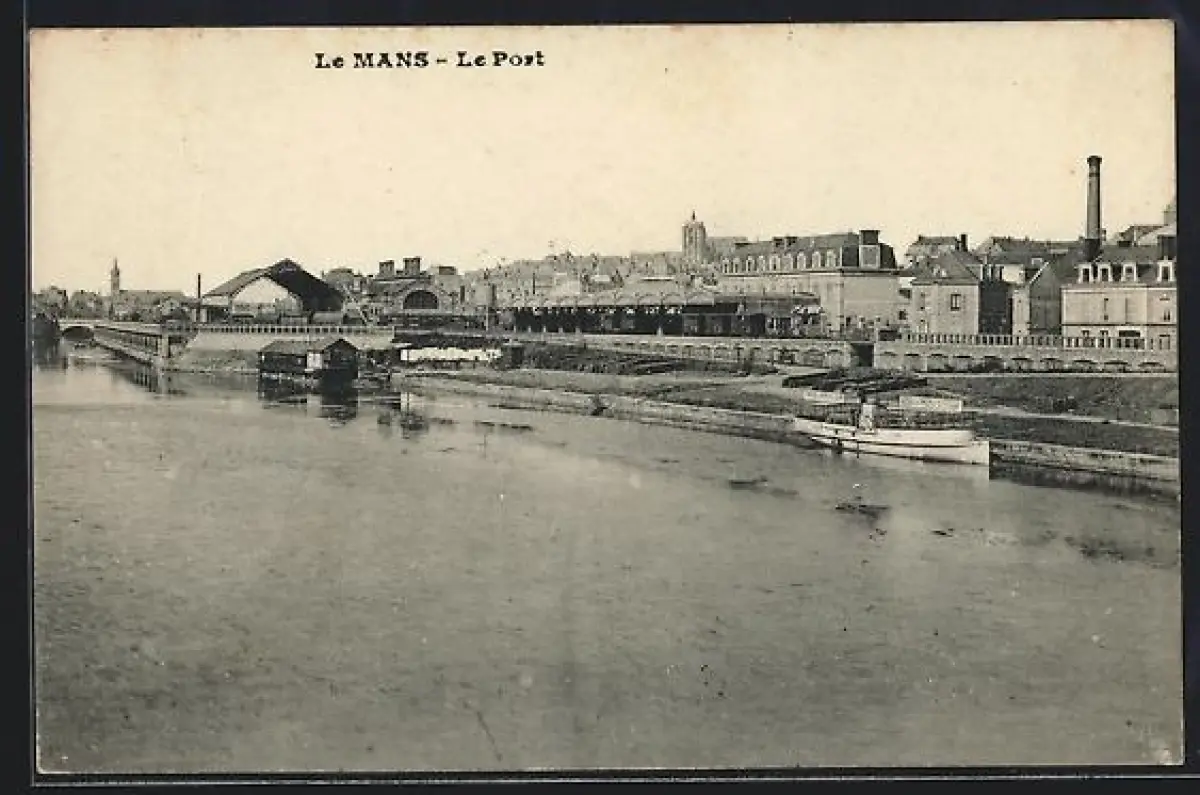 AK Le Mans, Le Port avec vue sur la rivière et les bâtiments industriels