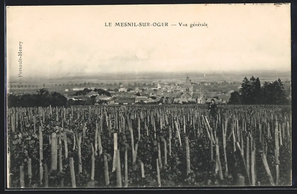 AK Le Mesnil-sur-Oger, Vue générale sur le village avec vignes au premier plan