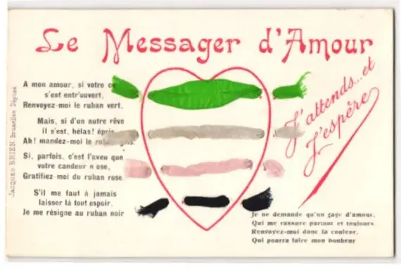 AK Le Messager d`Amour, Bedeutung farbiger Bänder in der Liebe
