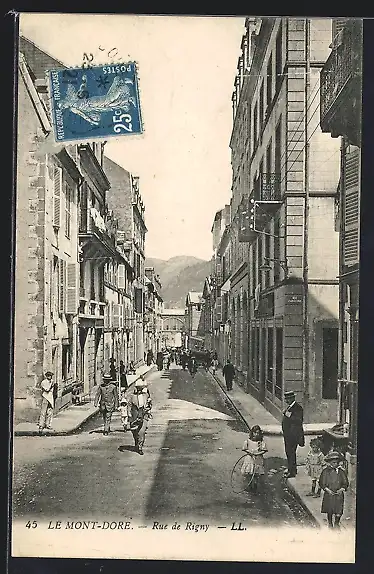 AK Le Mont-Dore, Rue de Reigny animée avec passants et architecture urbaine