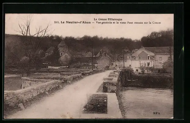 AK Le Moutier-d`Ahun, vue generale et le vieux Pont romain sur la Creuse