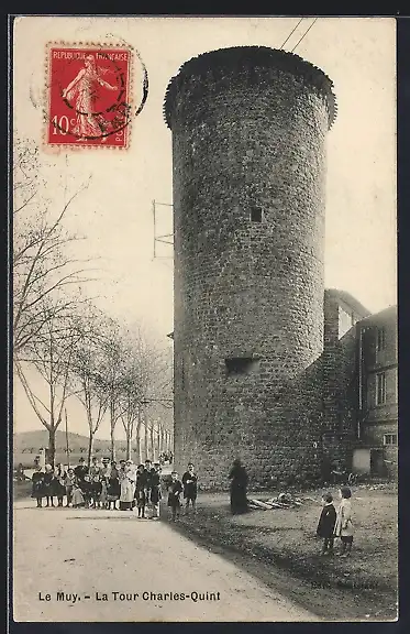 AK Le Muy, La Tour Charles-Quint avec des enfants autour