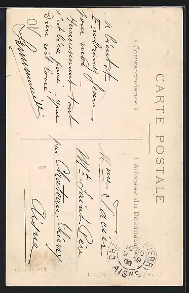Personenbezogene Daten auf der Rückseite der Karte wurden durch blauen Textmarker unkenntlich gemacht. Die blauen Stellen sind auf die Vorderseite durchgeweicht und wirken sich negativ auf das Postkartenfoto aus
