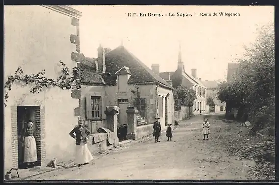 AK Le Noyer, Route de Villegenon avec habitants devant les maisons