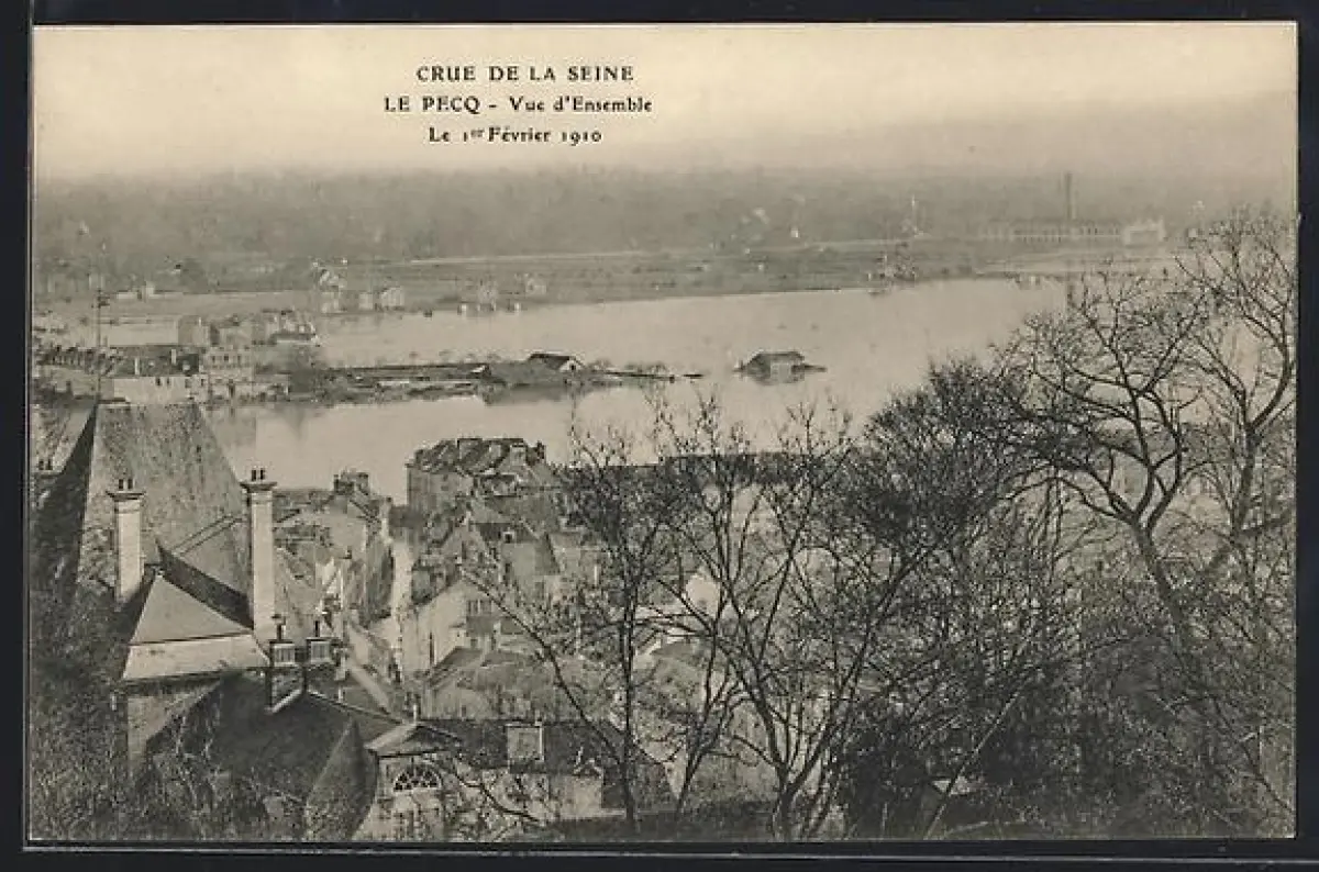 AK Le Pecq, Crue de la Seine, Vue d`ensemble du 1er Février 1910