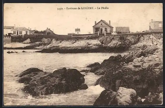 AK Le Perelo, vue sur la côte rocheuse et maisons en arrière-plan